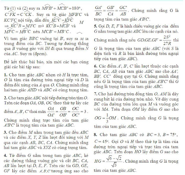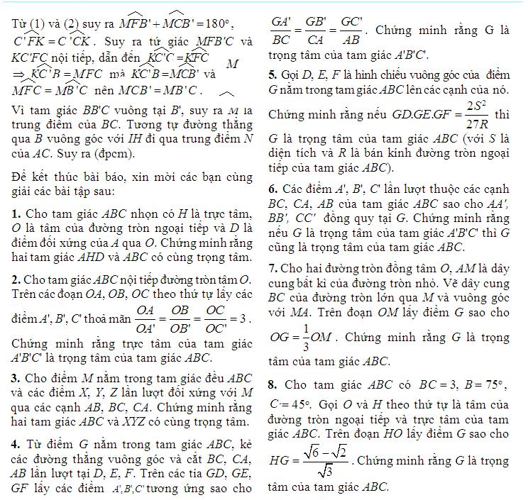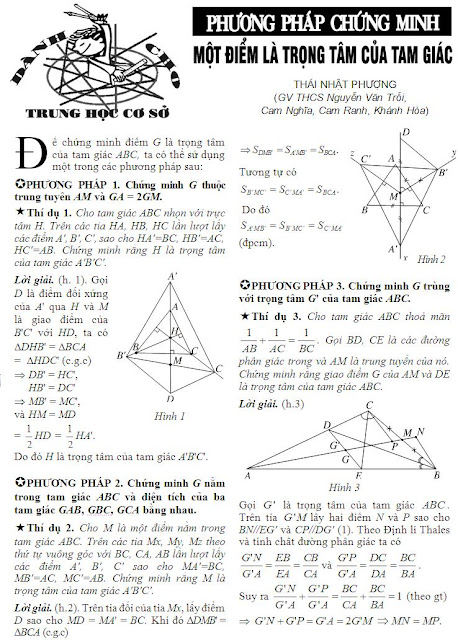 Yêu toán học xin giới thiệu phương pháp chứng minh một điểm là trọng tâm của tam giác đăng trên vietmaths